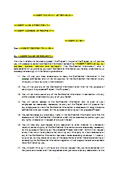 This One Way Confidentiality/Non-Disclosure Letter is not suitable where both parties are disclosing information to each other. If both parties are disclosing confidential information to each other then please use the Mutual Confidentiality/Non-Disclosure Letter.