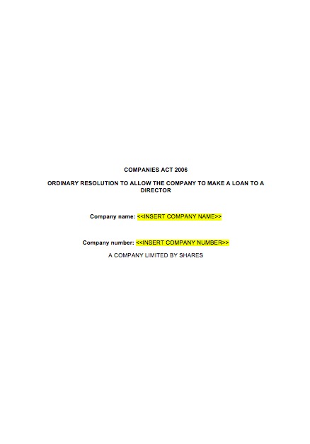 This Ordinary Resolution Allowing a Company to Make a Loan to a Director shall be used in order to confer the authority to the company to make a loan to a director.
