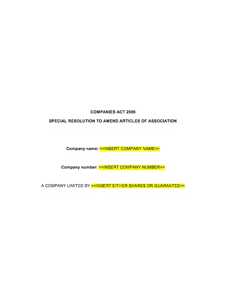 This Special Resolution – Amend Articles of Association template is in Microsoft Word format, written in plain English, easy to use and edit.