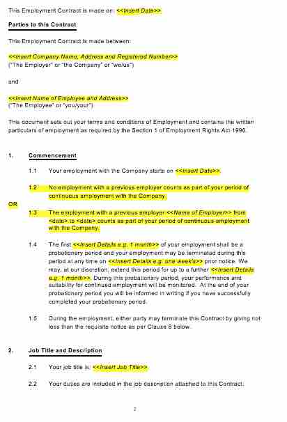 It is a requirement under the Employment Rights Act 1996 for Employers to provide their Employees with a written statement of their main terms and conditions of employment. This must be provided within 8 weeks starting from the commencement of Employment. This Annualised Hours Employment Contract contains all the main terms and conditions required under the Act.