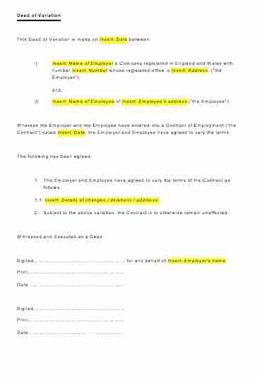 Deed of Variation - Employment Contract