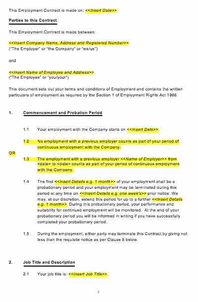 This Junior Employee Employment Contract (No National Living Wage) contains the following clauses: