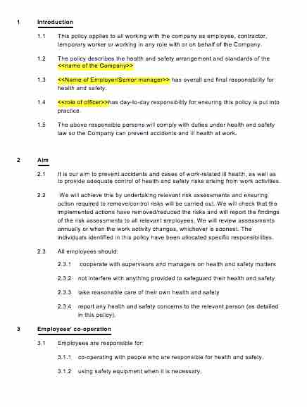 This Standard Health and Safety Policy & Procedures clearly sets out how an employer manages health and safety in the workplace by defining who does what, when and how.
