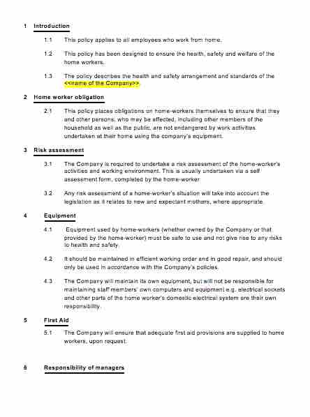 A Health and Safety Policy and Procedures template for your company's home working employees.